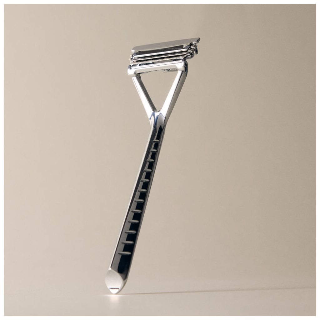 Moderný ekologický holiaci strojček. So zabudovanou výkyvnou hlavou a až tromi čepieľkami na lepšie a udržateľnejšie oholenie. Používa klasické kovové žiletky.