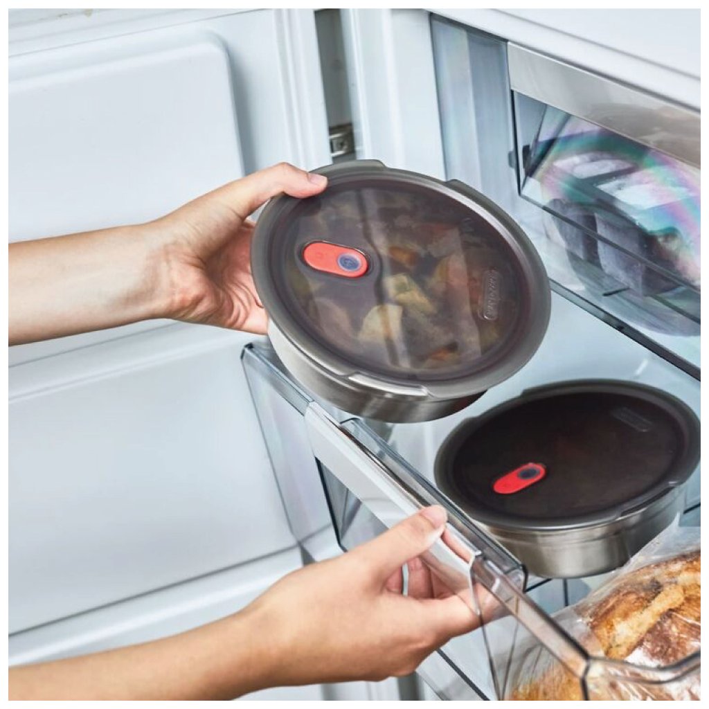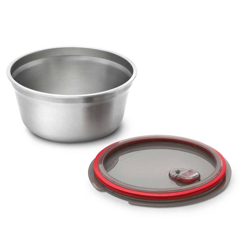Vyrobená z odolnej nehrdzavejúcej ocele a polypropylénu. Dvojité silikónové tesnenie na 100 % vodotesné a vzduchotesné skladovanie alebo prepravu.