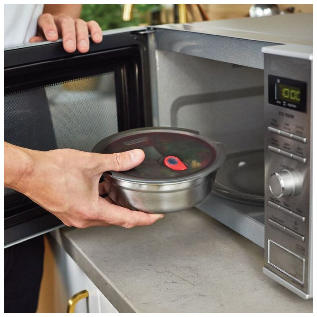 Miska na jedlo 3 v 1 z nehrdzavejúcej ocele vhodná do mikrovlnnej rúry.