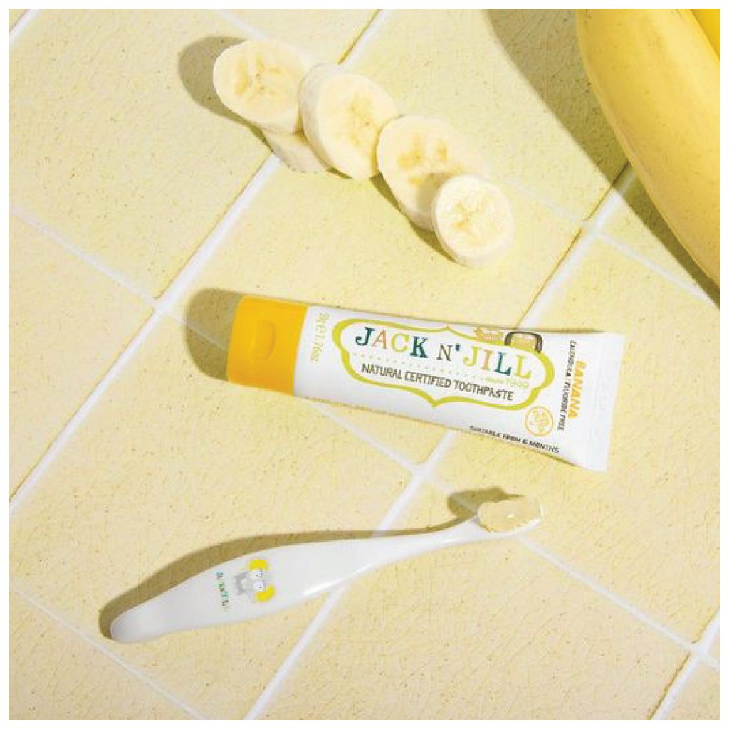 Zubná pasta Jack N' Jill so 40 % xylitolu pomáha vyrovnávať pH v ústach. xylitol tiež preukázateľne znižuje množstvo baktérií zachytených v zubnom povlaku, zatiaľ čo kremík jemne čistí zuby a pomáha predchádzať tvorbe zubného povlaku. Výťažok z kvetov nechtíka lekárskeho pomáha prirodzene upokojovať ďasná. Odporúča sa, aby sa vaše dieťa naučilo čistiť si zuby po každom jedle, čo pomôže vytvoriť správne návyky ústnej hygieny.