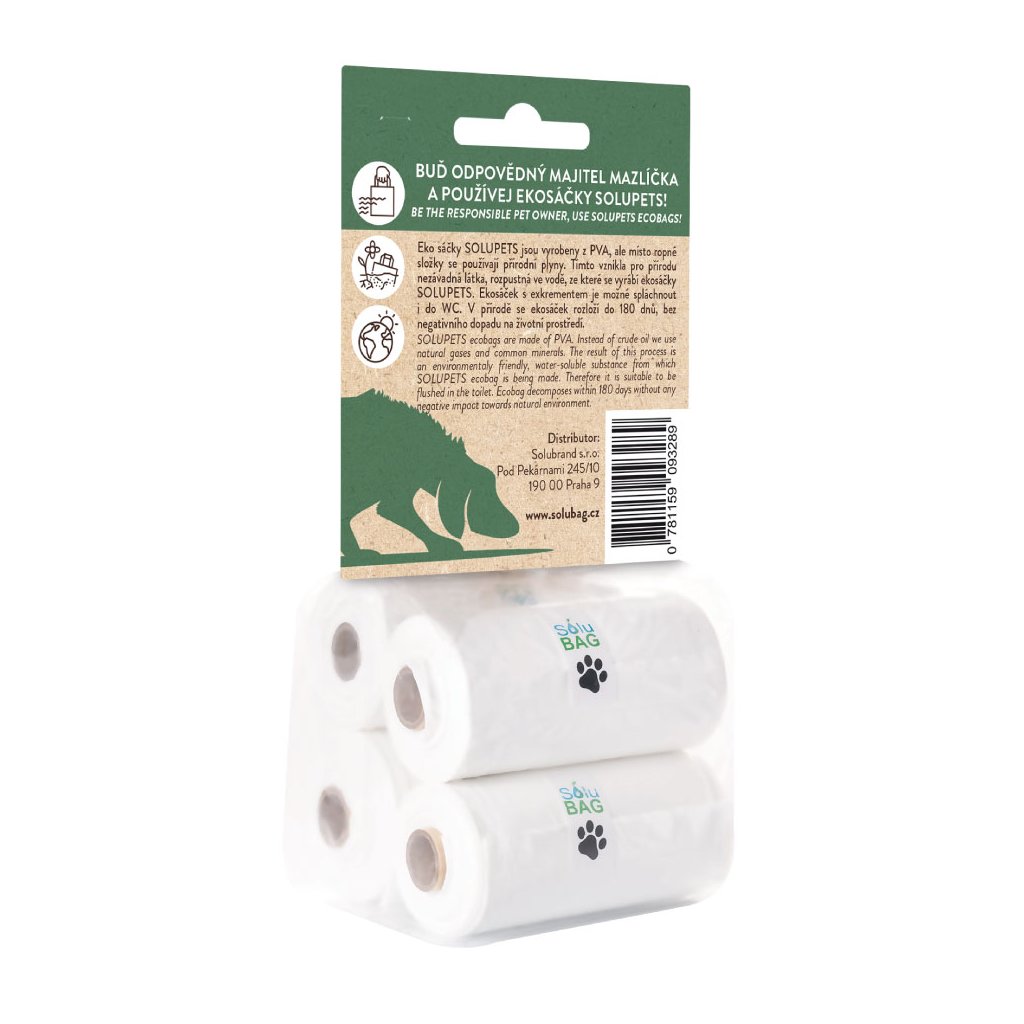 Inovatívne ekologické vrecká pre psie exkrementy, vyrobené z ekologickej fólie Solubag, bez obsahu mikroplasov.